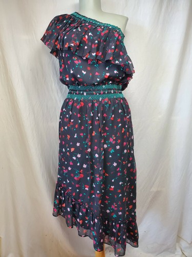 Joie Hafsa One Shoulder Asymmetric Silk Ruffle Dress Sz S Black Colorful Floral Ebay
